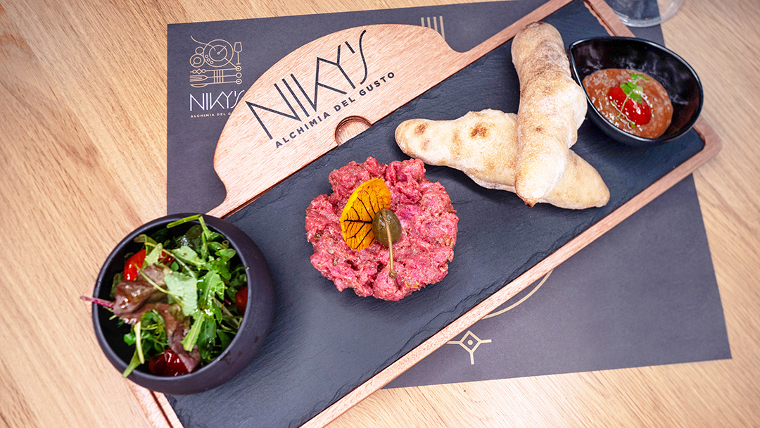 Tartare di carne selezionata (160gr) dall'ottima frollatura e condita con la nostra ricetta segreta. Servita con un'insalatina fresca, carciofi* conditi e baguette fatte in casa, appena sfornate