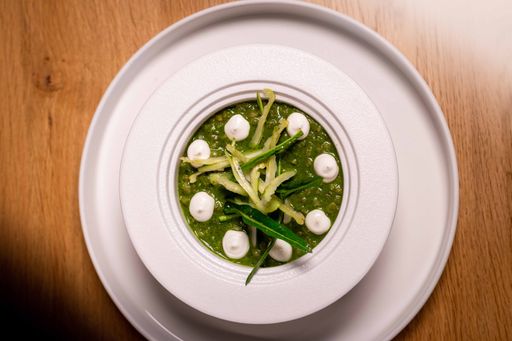 alla robiola e la puntarella, proposta in crema,